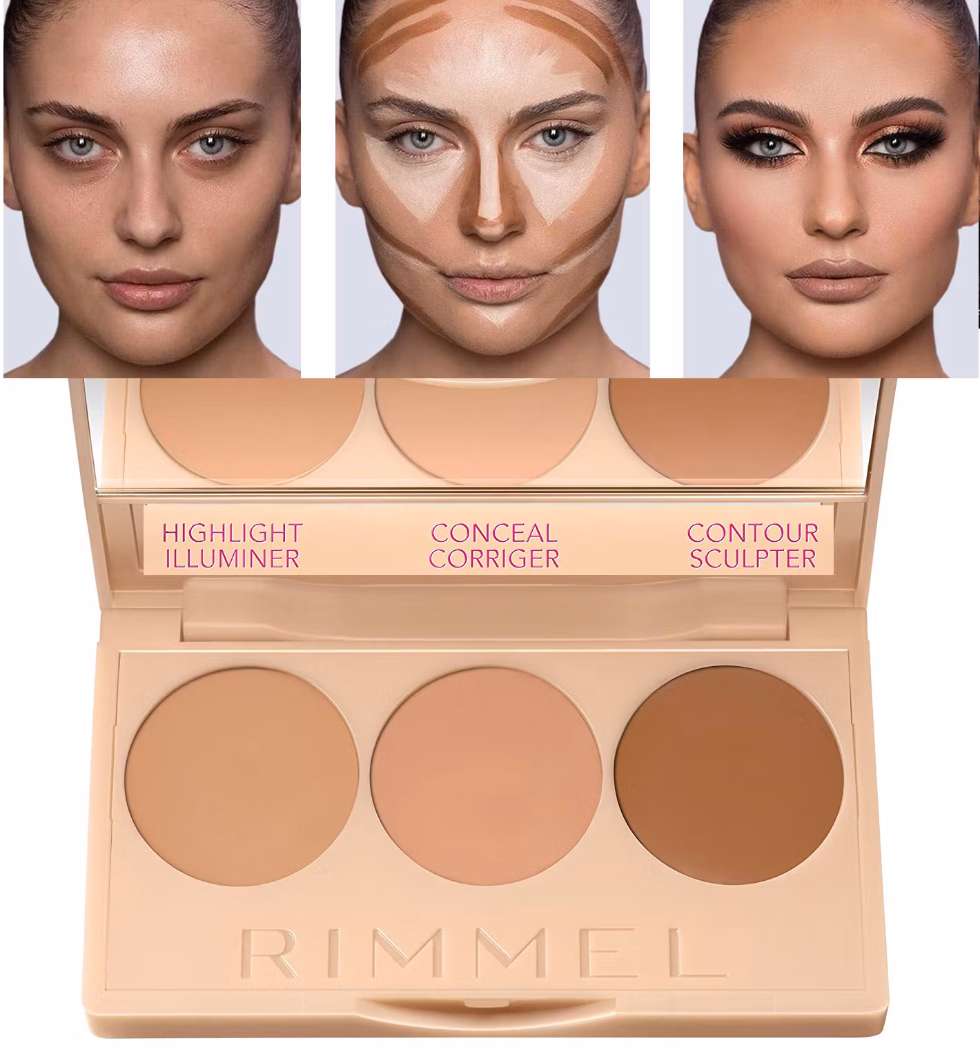 Rimmel Insta Conceal & Contour Palette 3 nyanser som kompletterar de olika tonerna runt ditt ansikte vilket gör att du kan:
