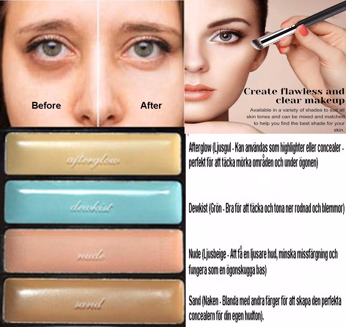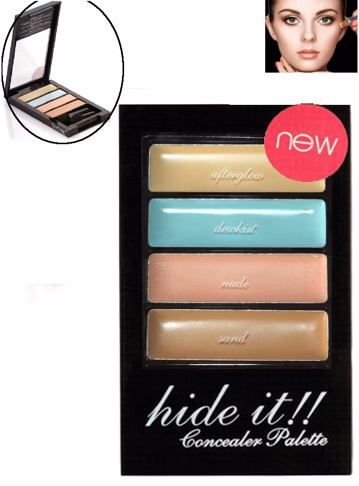 En perfekt fickformat concealer-palett, perfekt för en kvinna, omedelbart döljer undereye mörka ringar, fläckar och andra huds brister.