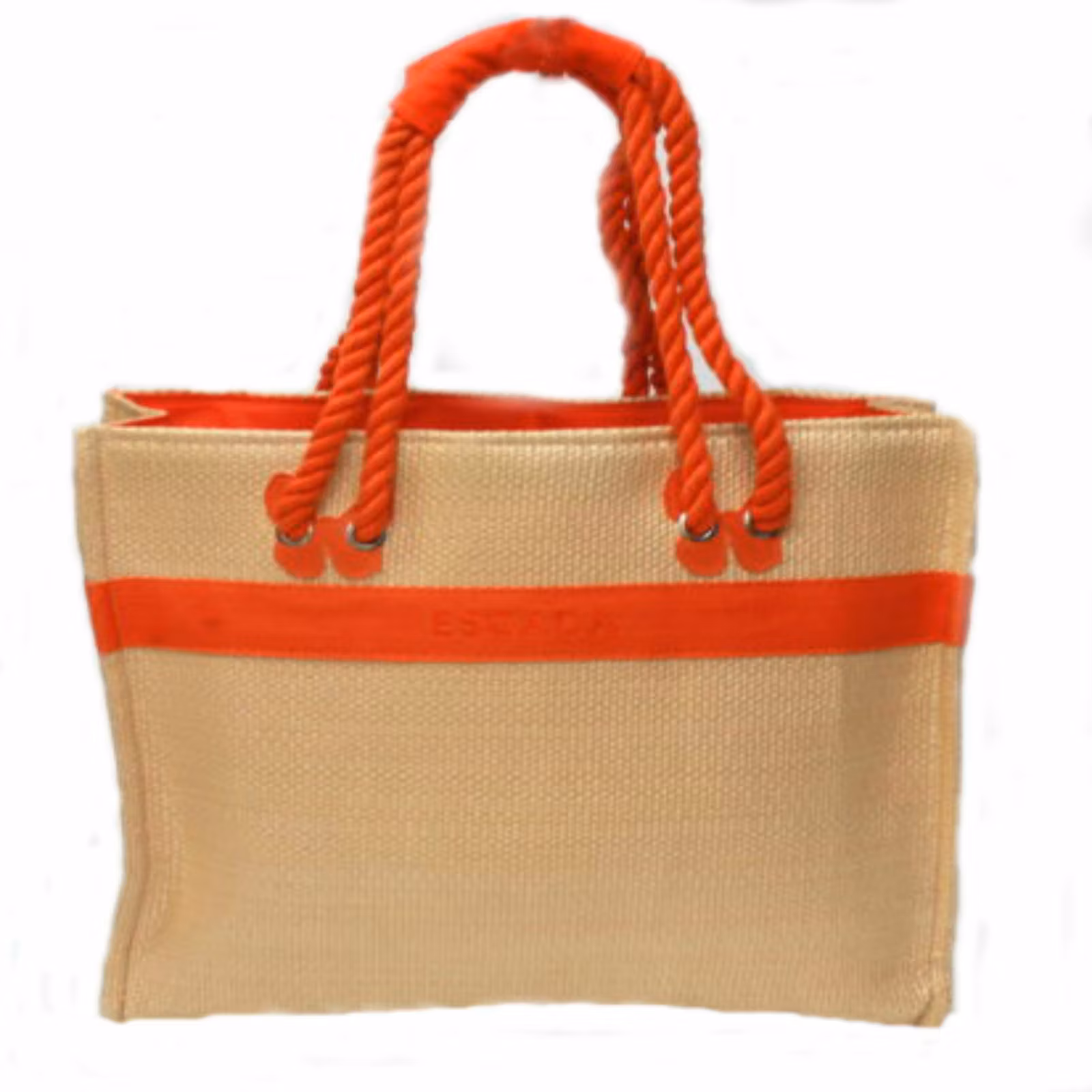 Denna medelstora halmväska kommer med vackra ljusorange detaljer inklusive två tuffa rephandtag med fjärilsdetalj där de möter väskan och en orange tygremsa som löper runt hela väskan med Escada-logotypen broderad på den. Fodrad med orange bomull är den här öppna väskan perfekt för att ta på dagar på stranden eller bara för att stoppa in dina dagliga matvaror på vägen tillbaka från butiken.