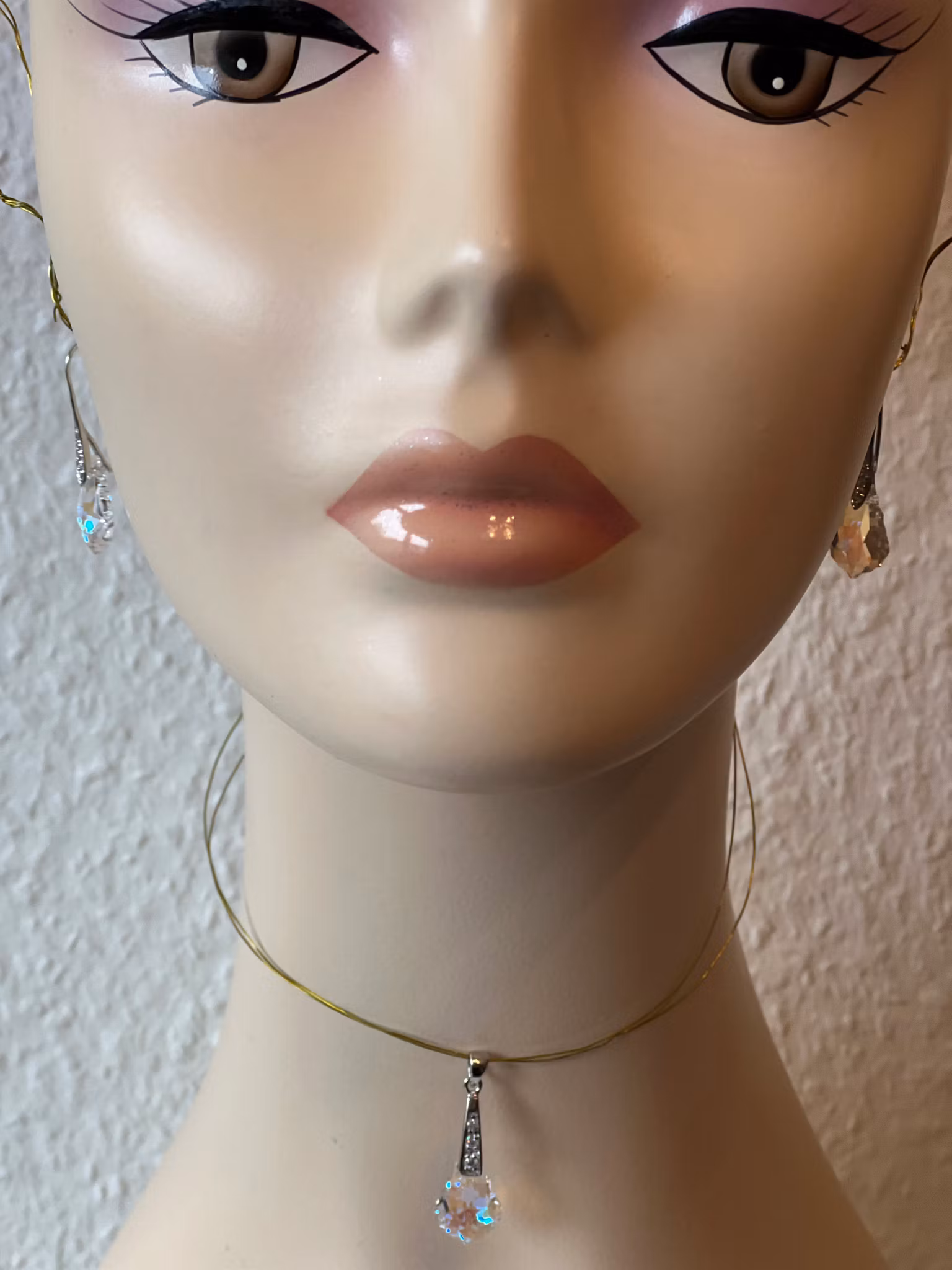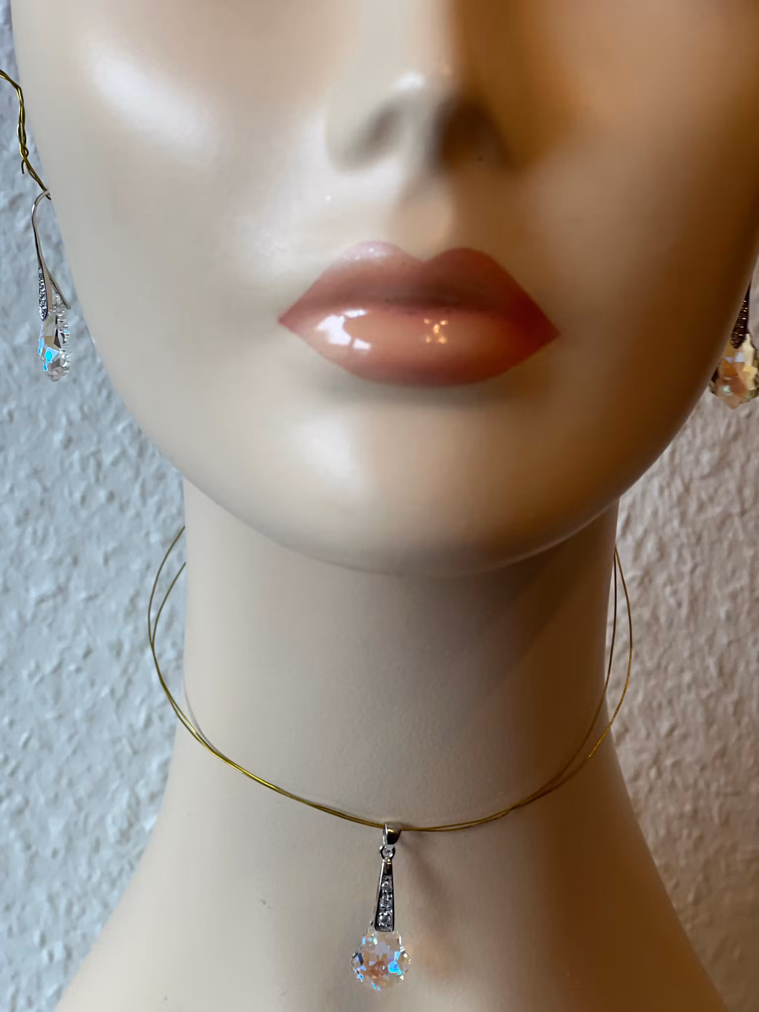 Droppe Swarovski-kristall Äkta Silver Örhängen & Hänge
