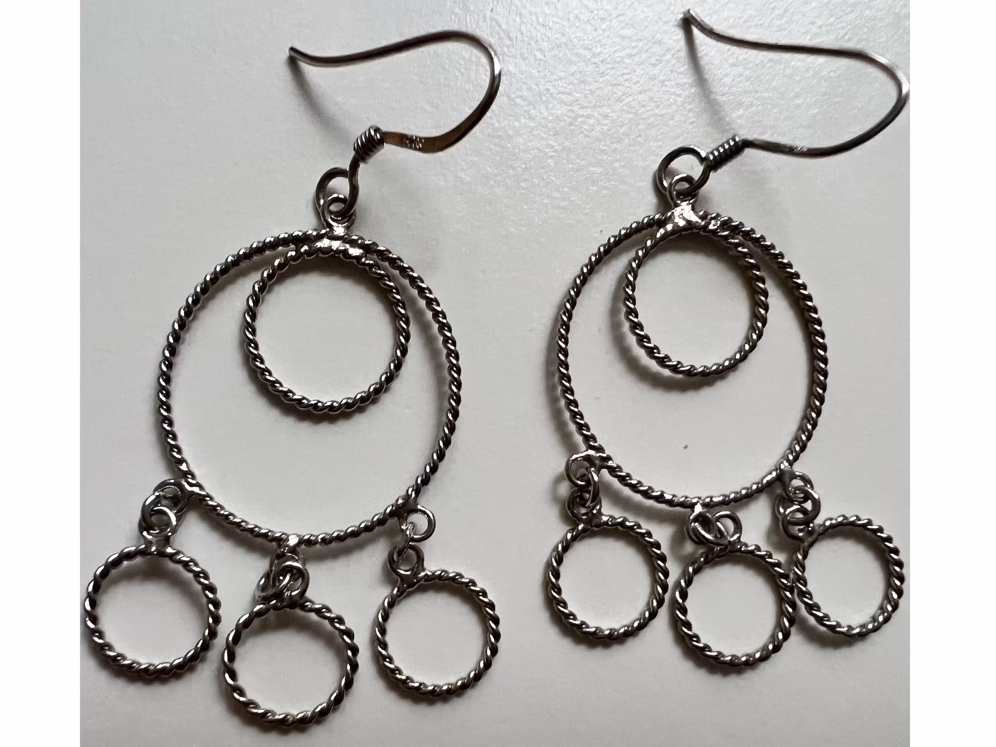 Unikt Långa Örhängen med 5 ringhängen i Äkta Silver