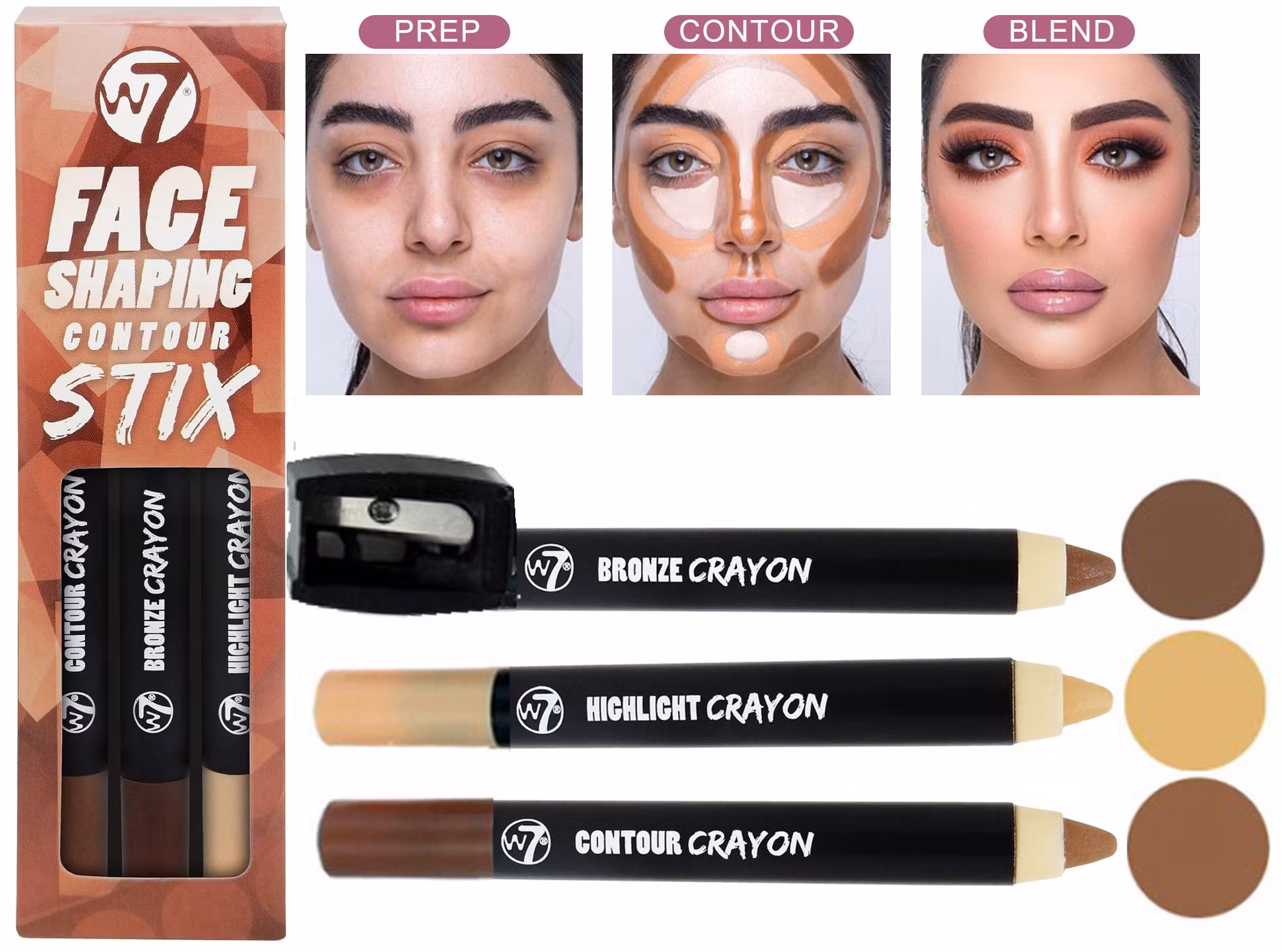 W7 Face Shaping 3 Contour Stix Highlight, Bronzer&Contour Shade är den trio-contourande produkten.