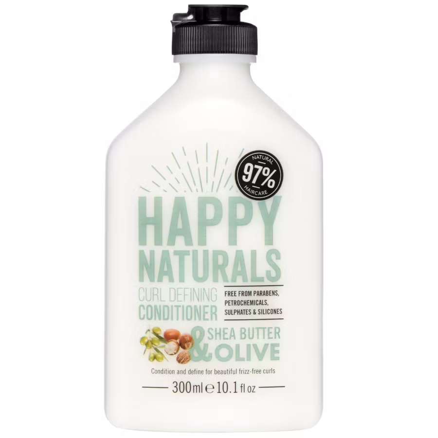 Happy Naturals Shea Butter & Olive Curl Defining Conditionerr inspiration i Shea Butter & Olive för att skapa denna speciella vårdlinje för lockigt hår.