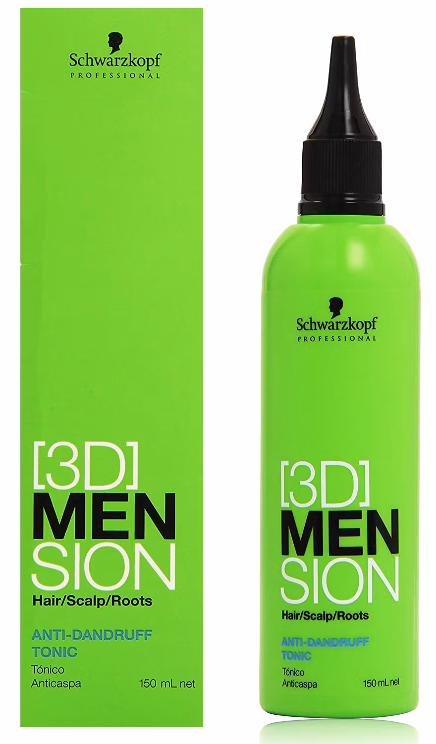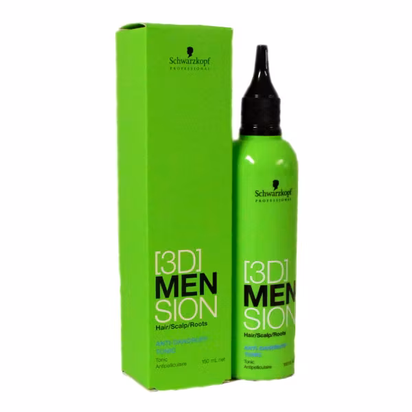 Innerhåller 150ml Schwarzkopf 3D Men Sion Anti-Dandruff Tonic för män.