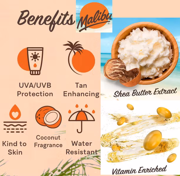 Malibu High Protection Dry Oil Spray:Polerar och mjukgör huden omedelbart för en perfekt, jämn solbränna!Berikad med Vitamin A, C och E, och Glycerin.Enkel appl