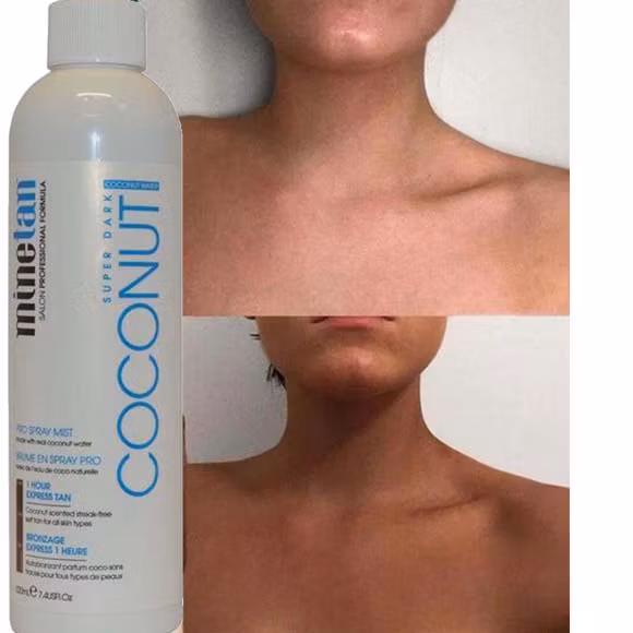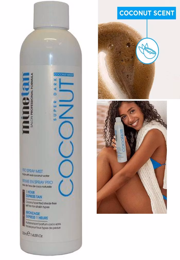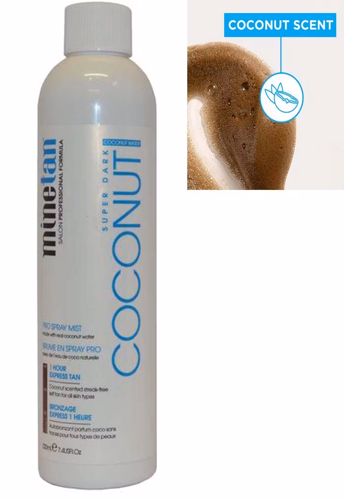 Minetan Coconut Super Dark Self Tan är en PRO SPRAY MISTsBrun utan sol, för hemmabruk med riktigt bra resultat för ansikte & Kropp:-kokosnötvattenbaserade s