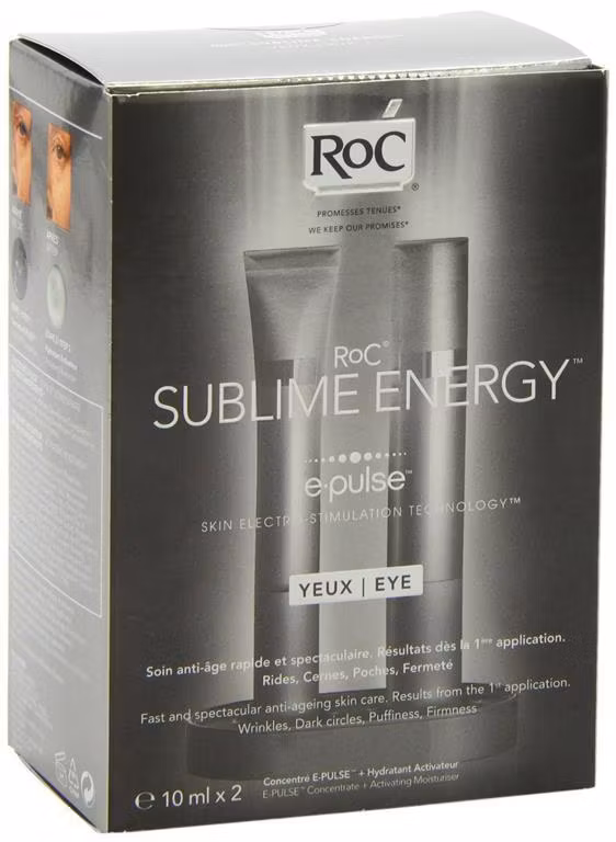 ROC Sublime Energy e-Pulse EYE Concentrate 10ml+Moisturiser 10ml är Anti-Aging Kräm kan minimera åldringstecken inklusiv slöhet, trötthet och uppkomsten av fina linjer. Bidrar till att omedelbart ljusna och fräscha upp huden omkring ögonen. Anti-mörka ringar och påsar, de fungerar genom att göra din hy stunsig, för att uppnå bästa resultat med anti-aging krämer måste de appliceras varje dag och varje natt.