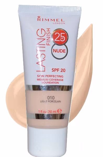 Rimmel Lasting Finish 25h Nude Foundation ger en medium felfri täckning.