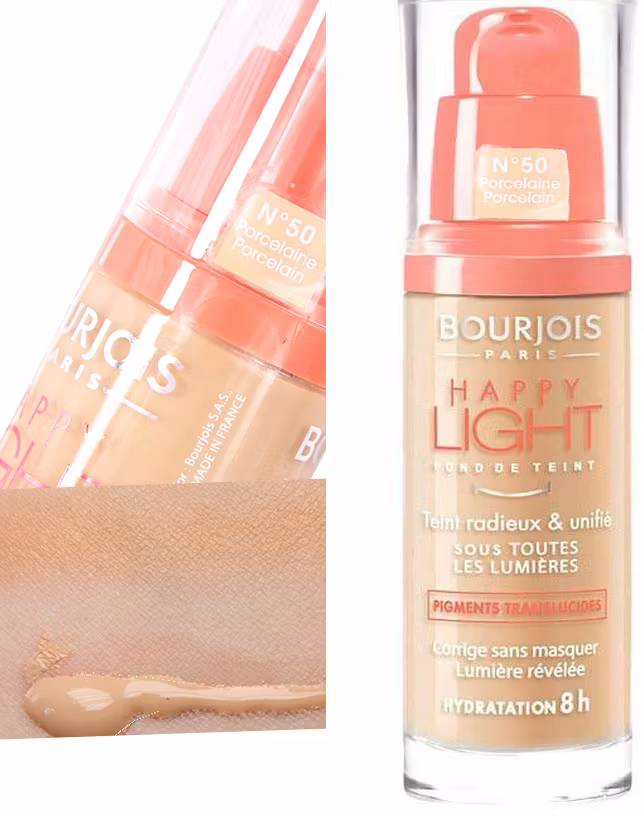 Bourjois Happy Light Foundation-Lysande och felfri hy i alla ljusförhållanden-Genomskinliga pigmenter-Korrigerar hudtoner-8 timmars hydratiserade effekter.Innhå