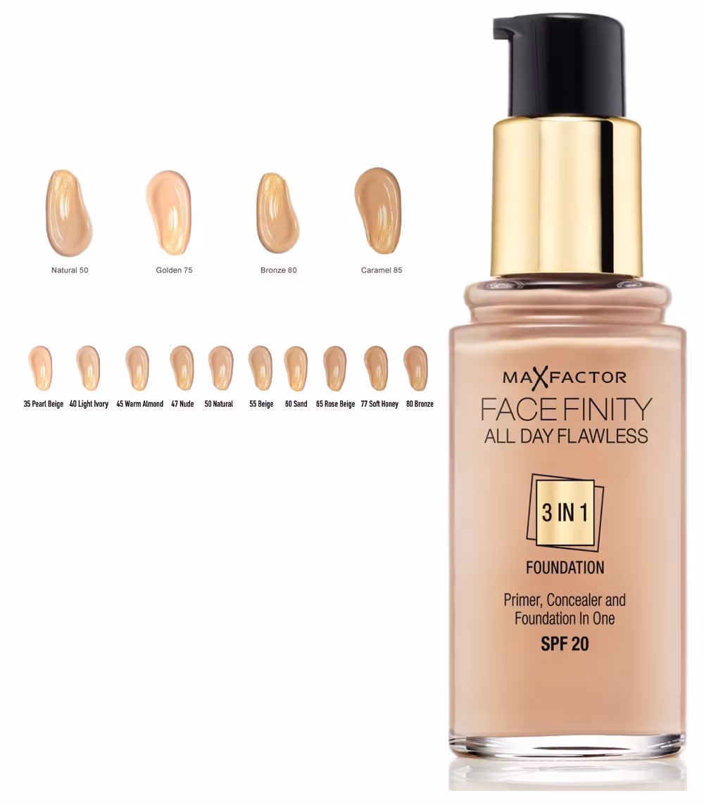 Max Factor Face Finity All Day Flawless 3 in 1 Foundation, nämligen primer, foundation & concealer, är allra mest lagom foundation i hög kvalité och ger en perfekt finish.