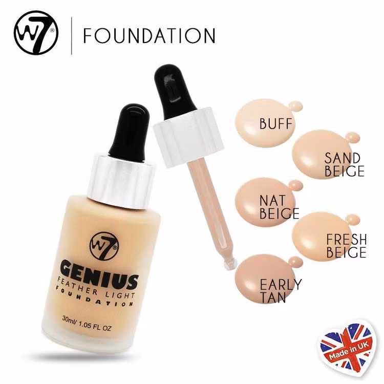 W7 Genius Feather Light Foundation är en lätt foundation som ger ett fräscht, naturligt och bekvämt resultat.Denna återfuktande formel säkra