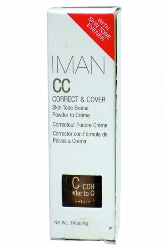 IMAN CC Correct & Cover Skin Tone Evener Powder to Creme Concealer:-Berikad med mineraler, växtextrakt protein, vitaminer B, C och E och betakarotein för at