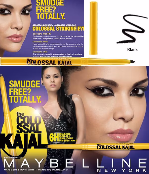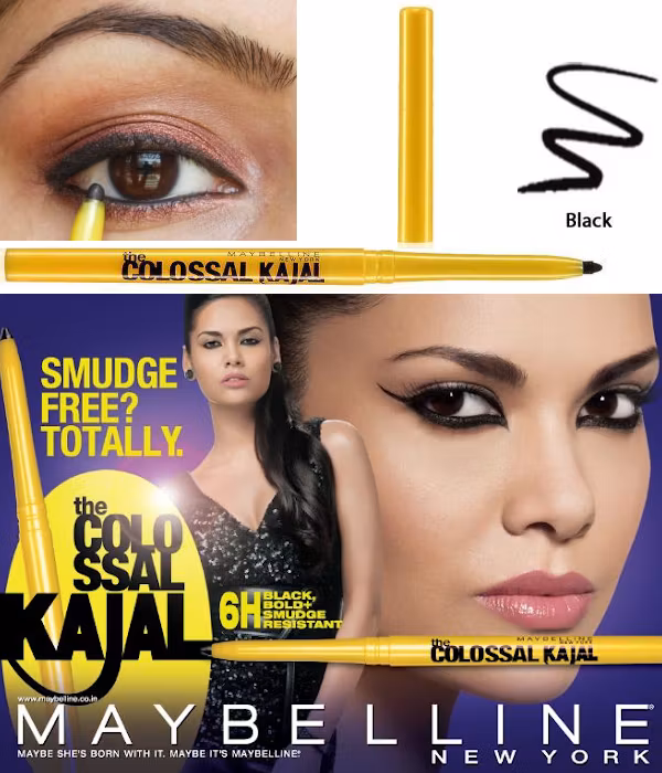 Maybelline The Colossal Kajal- Beautiful eyes, Vitamin E Smudge Free Eyeliner har följande fördelar:. Djupt svarta pigment som ger intensiv färg och glansṖ Färg