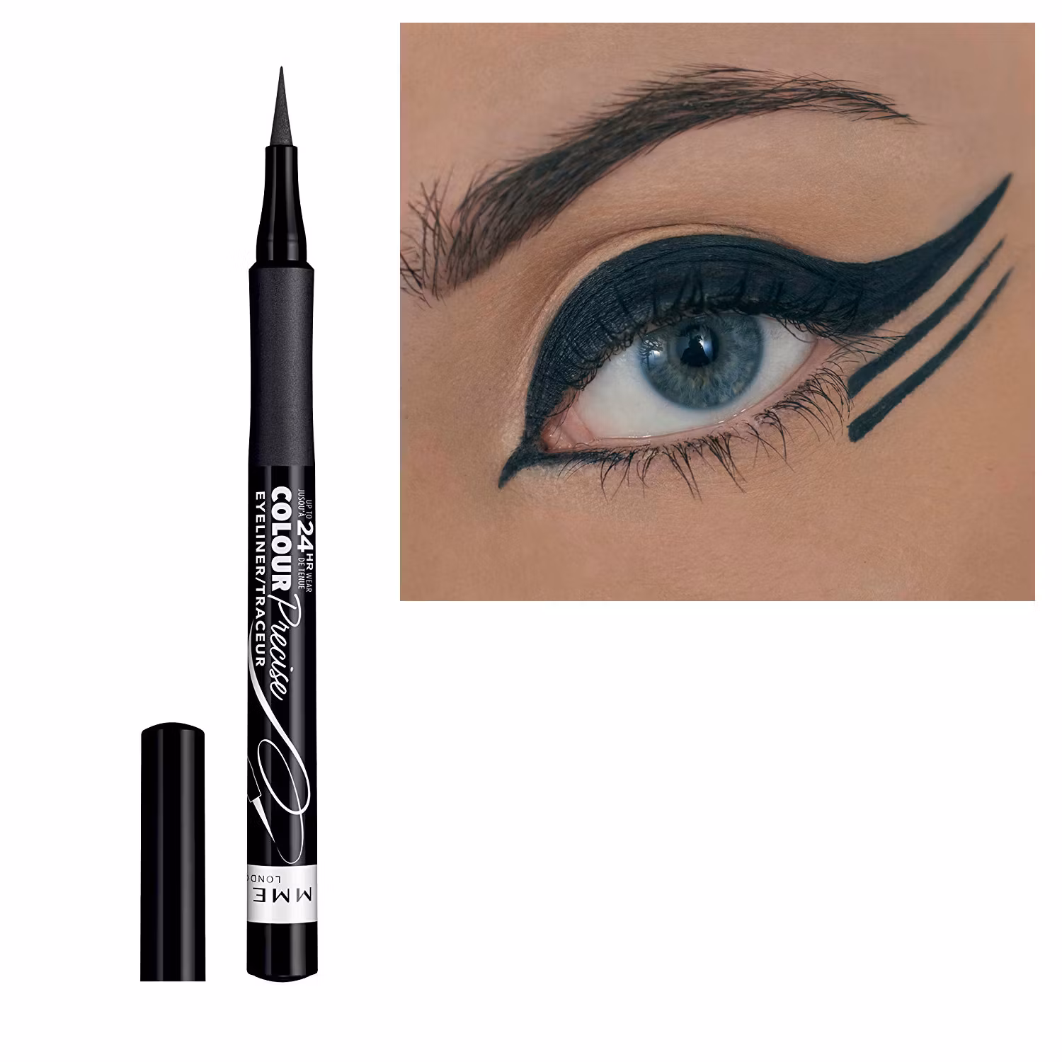 Ge en ultra-svart, tatuering-liknande flytande liner med mjuk, avsmalnande filtspets.