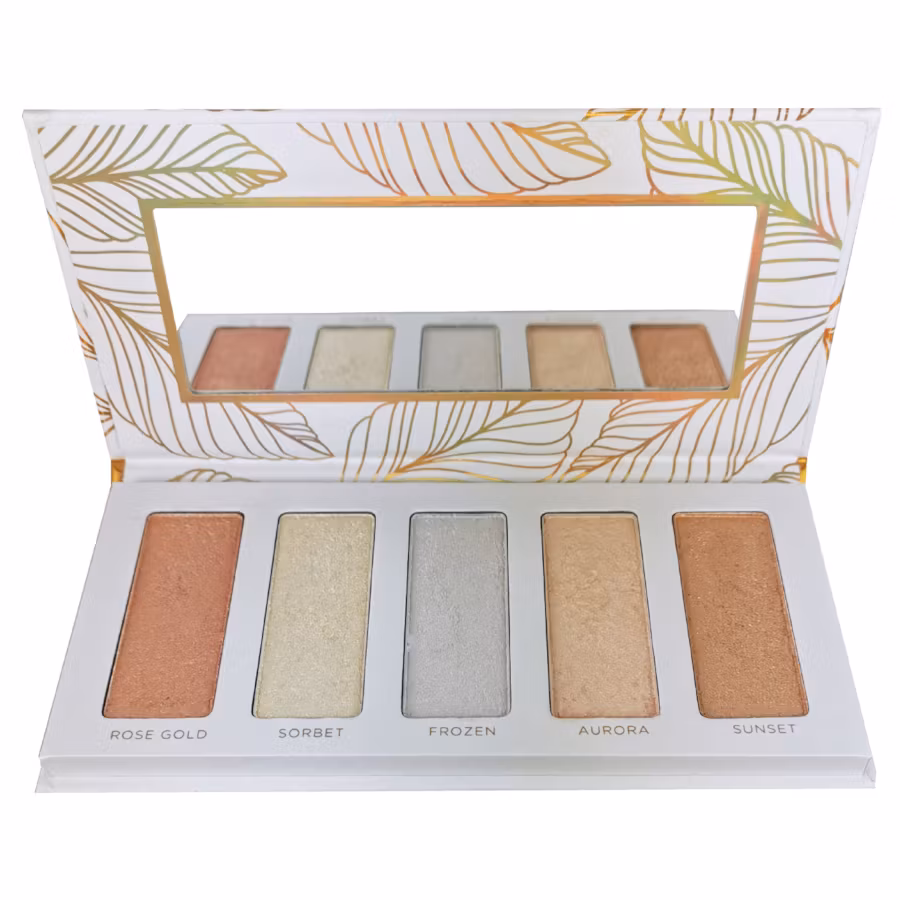 Läcker Highligh palette, från Body Collection Lasting Finish Collection, i läckert Rose Gold, Sorbet, frozen, aurora och sunset nyanser innehållande med mineralolja.