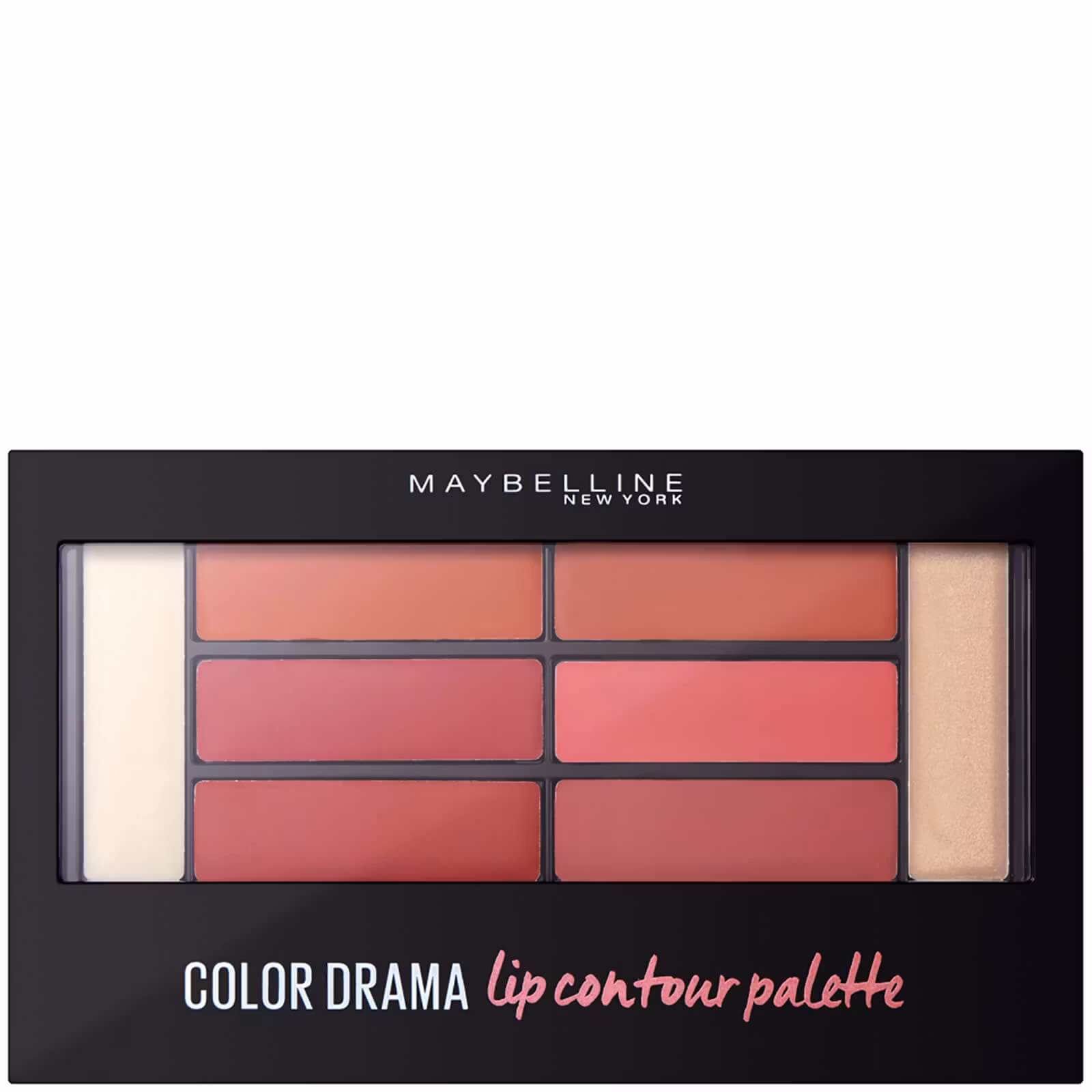 Maybelline Color Drama Lip Contour Palette innehåller 6 färger, 1 primer, 1 highlighter och 1 applikator.