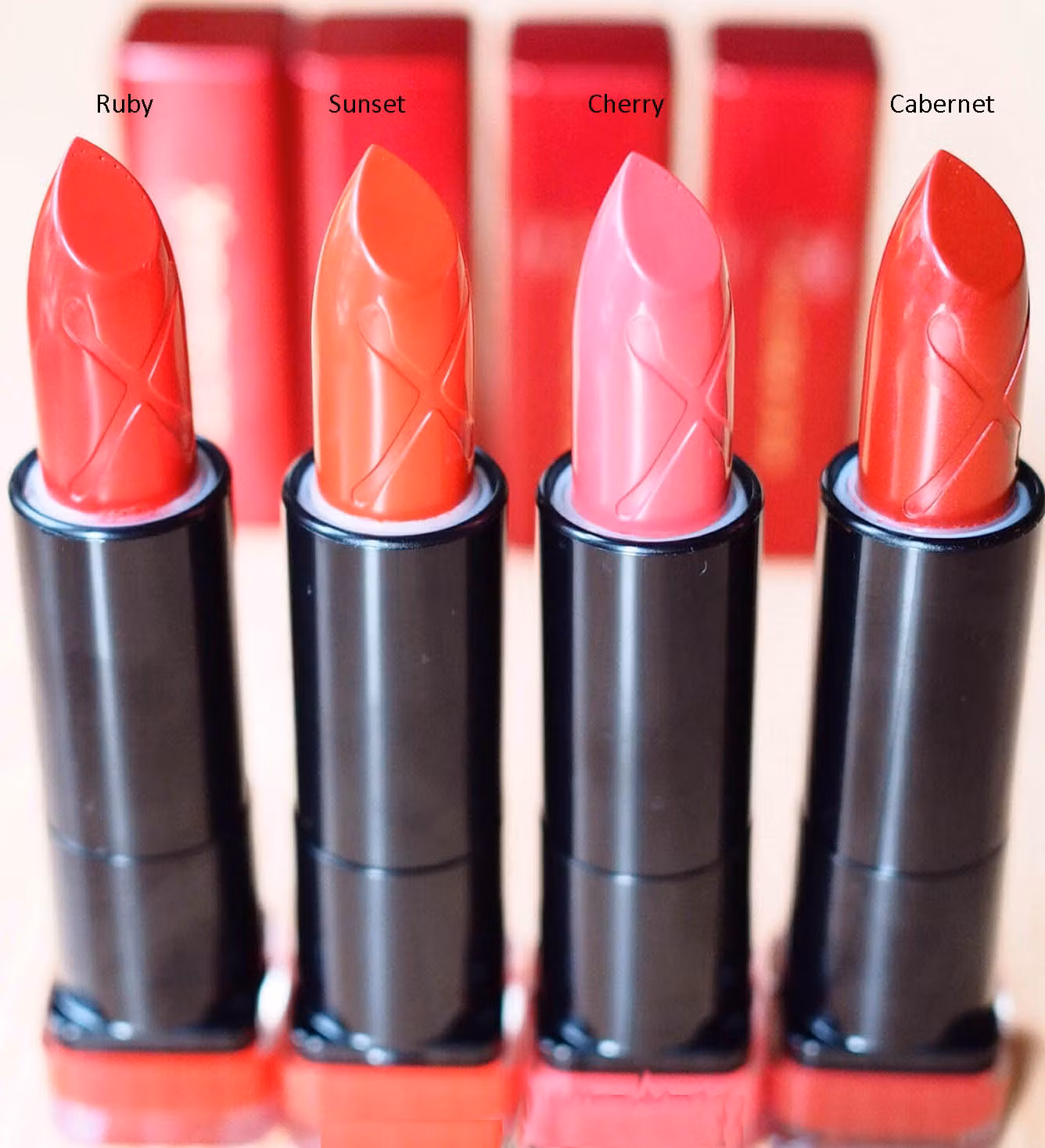 Marilyn Sunset Red- an orange-toned red. Marilyn Berry- a red with blue undertones, and Marilyn Cabernet- a deep and dark purple-toned red.