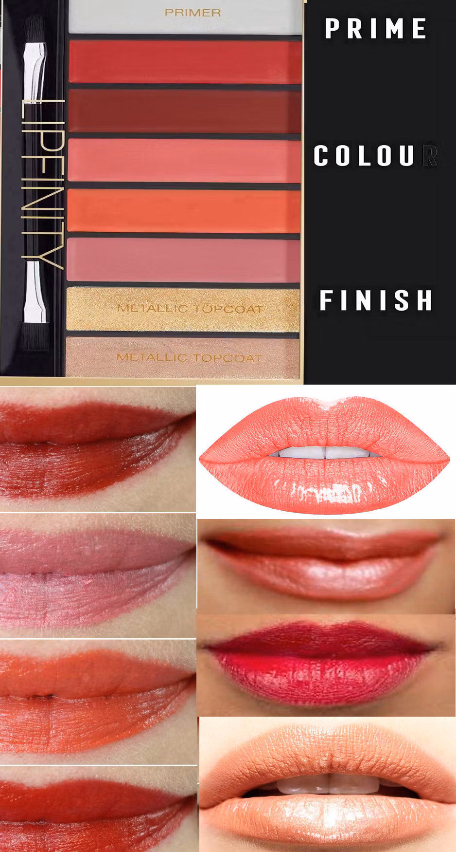 Max Factor Lipfinity Palette är en härlig palett full med krämiga och färggranna läppnyanser. Den krämiga formulan lägger sig fint över läpparna och ger dem en vacker glans. I paletten finns även två stycken metalliska nyanser som kan appliceras ovanpå en nyans för extra effekt.
