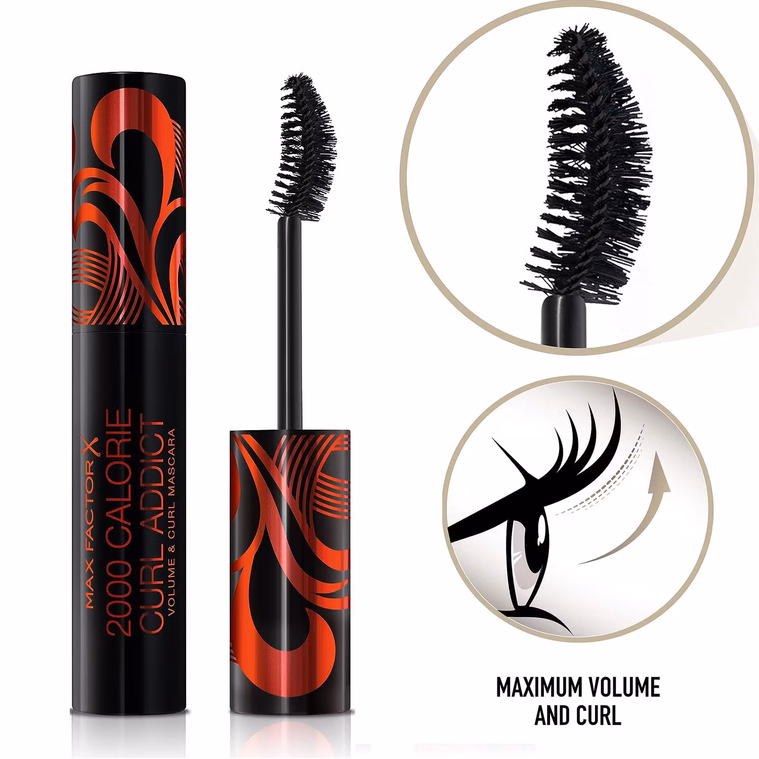 Max Factor 2000 Calorie Curved Addict Brush Mascarager klassiska fransar med maximal volym och kurvig form.