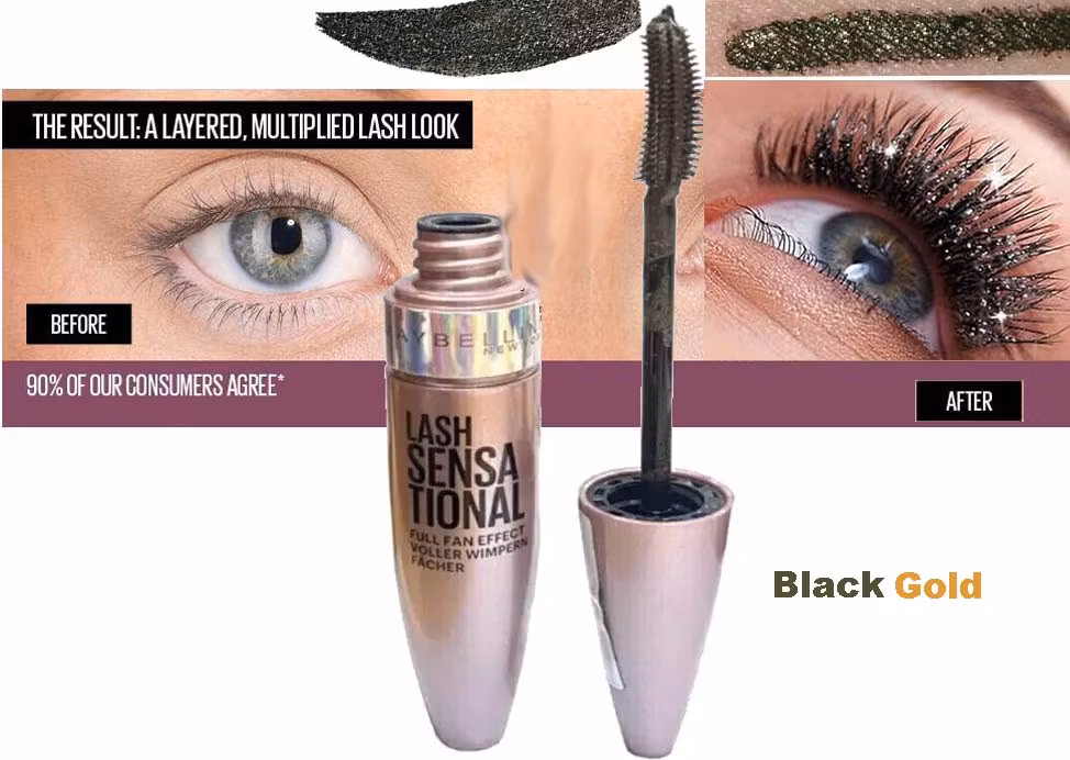 Maybelline Lash Sensational Full Fan Effect Mascara/Mascara with Gold Shimmer Effect är en maximum volymmascara med solfjädereffekt som ger solfjäderformade ögo