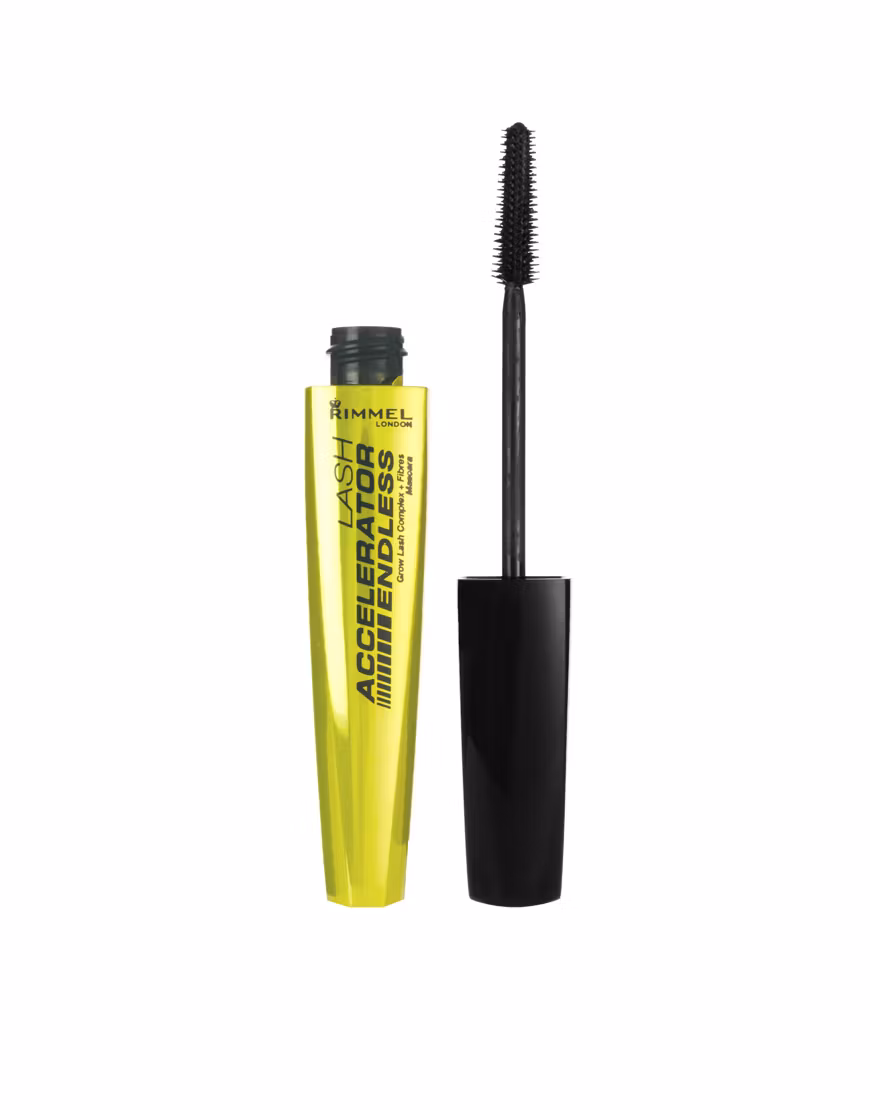 Rimmel Accelerator Endless Mascara with Grow Lash Complex plus fibres ger en ultra-förlängning på ett ögonblick och får ögonfransarna att verka upp till 80% län
