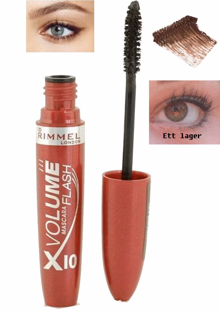 Rimmel Volume Flash X10 Mascara har följande fördelar: -Långvarig -Ingen Klump, kladdar eller flagn -Upp till 10 x mer volym