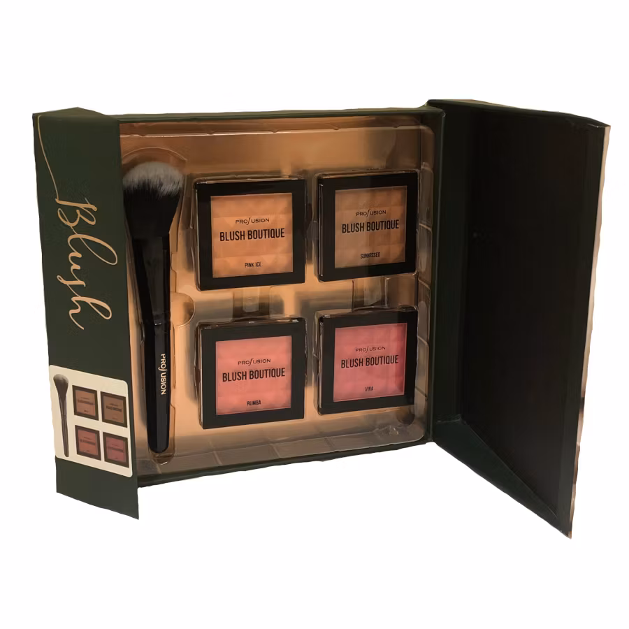 Profusion Blush Boutique Rosette Palette har en professionell sminkborste kan användas att underlätta applicering blusher, bronzer, ansiktskontur och ansiktspul