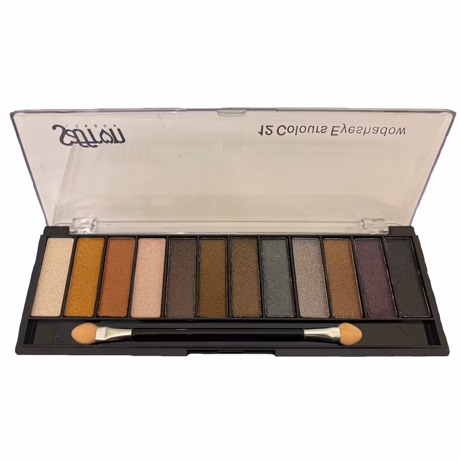 Saffron Simply Nude 12 Colour Eyeshadow Palette innehåller 9 metallisk nakade ögonskugga och en tvåsidiga applikatorer.