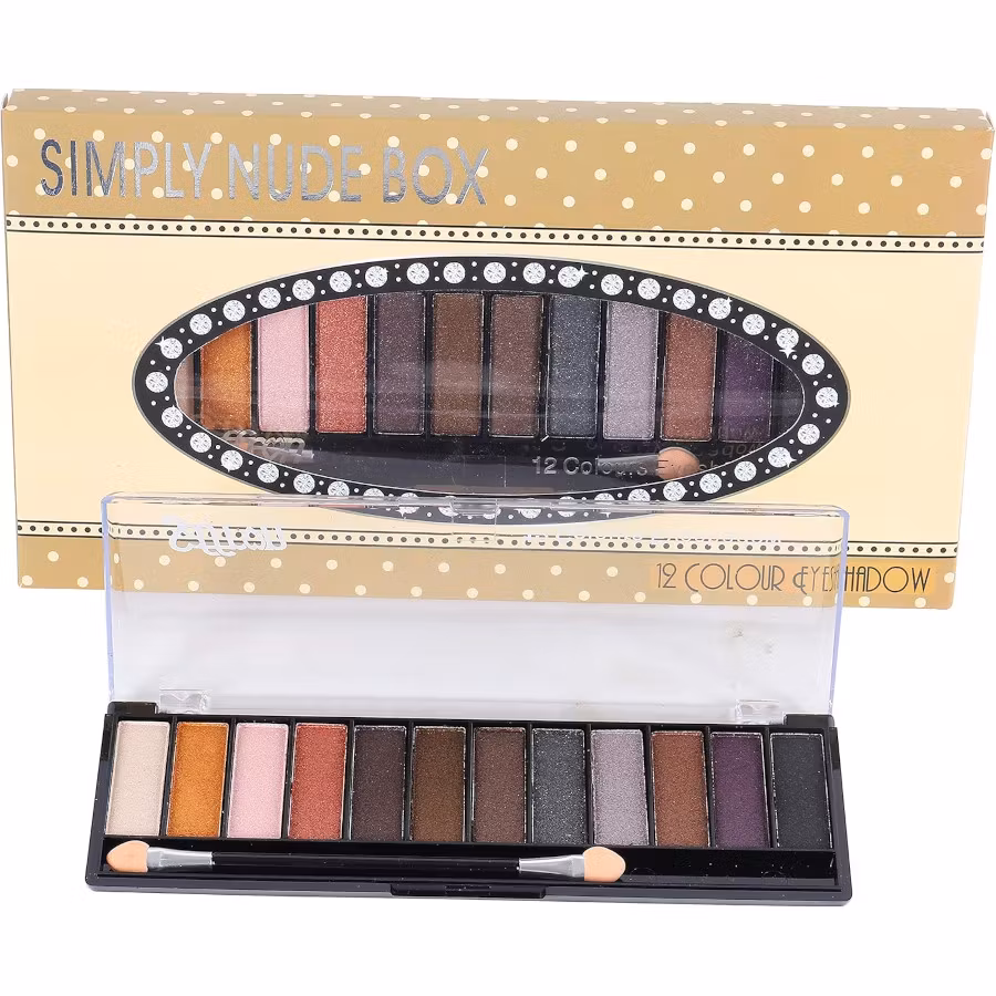 Saffron Simply Nude 12 Colour Eyeshadow Palette innehåller 9 metallisk nakade ögonskugga och en tvåsidiga applikatorer.Palettet väger ca 250gram.