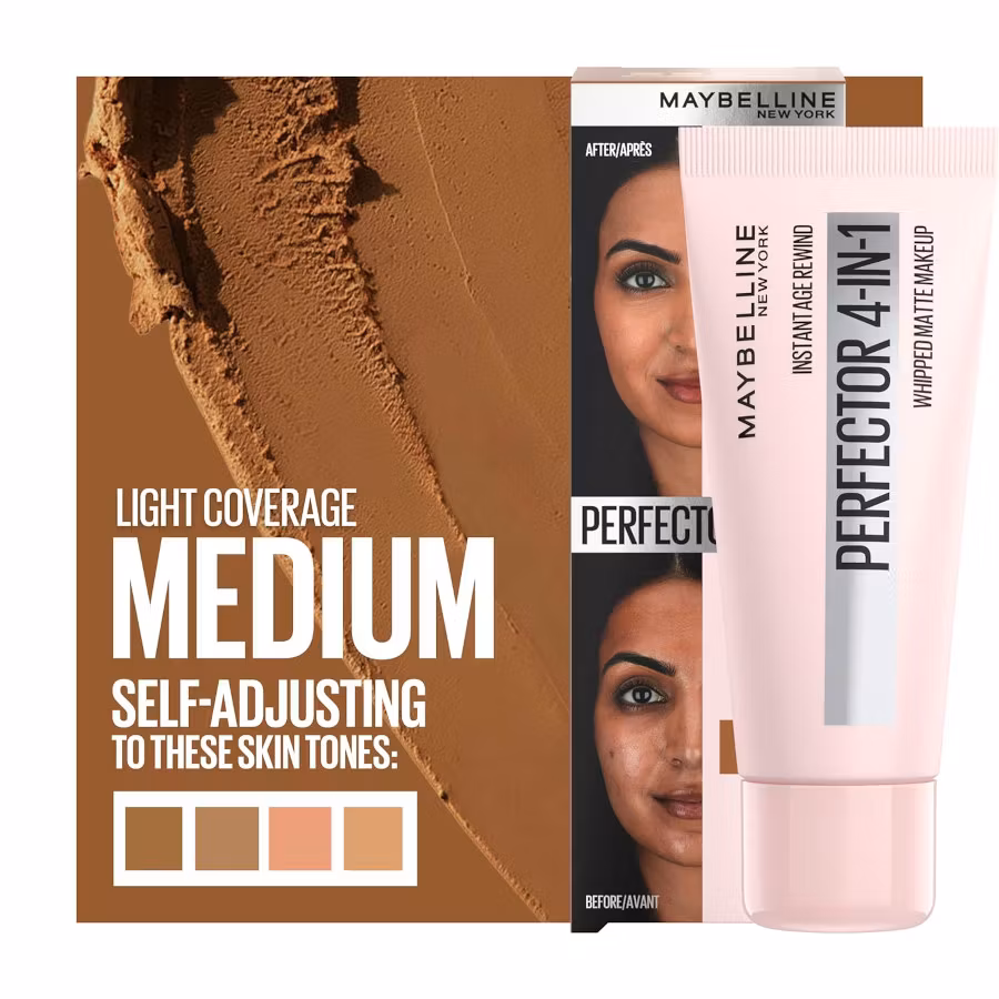 Maybelline Instant Anti Age Perfector 4-IN-1 Whipped Matte Makeup erbjuder fyra fördelar i en produkt genom en vispad, lätt konsistens.