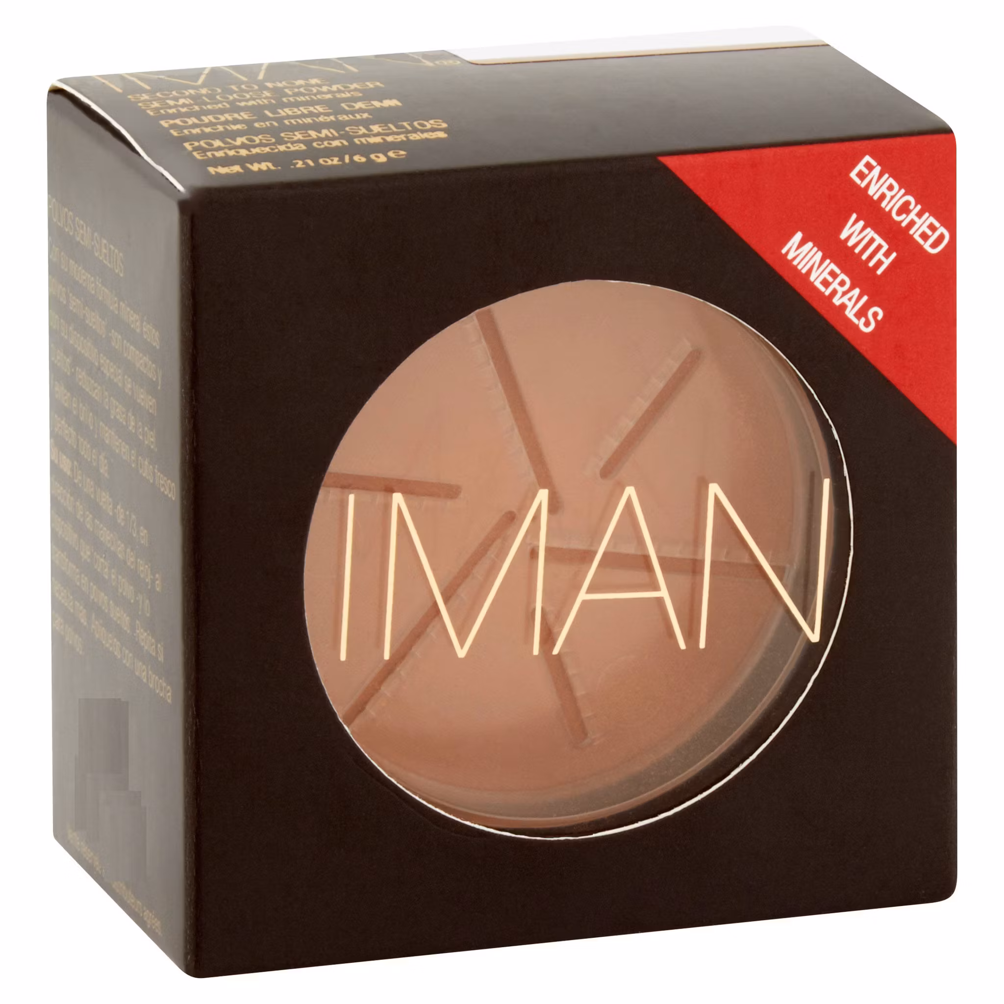 IMAN Second To None Semi-Loose Powder är ett unikt mineral-infuserat, genomskinligt och halvskinligt sminkpulver.