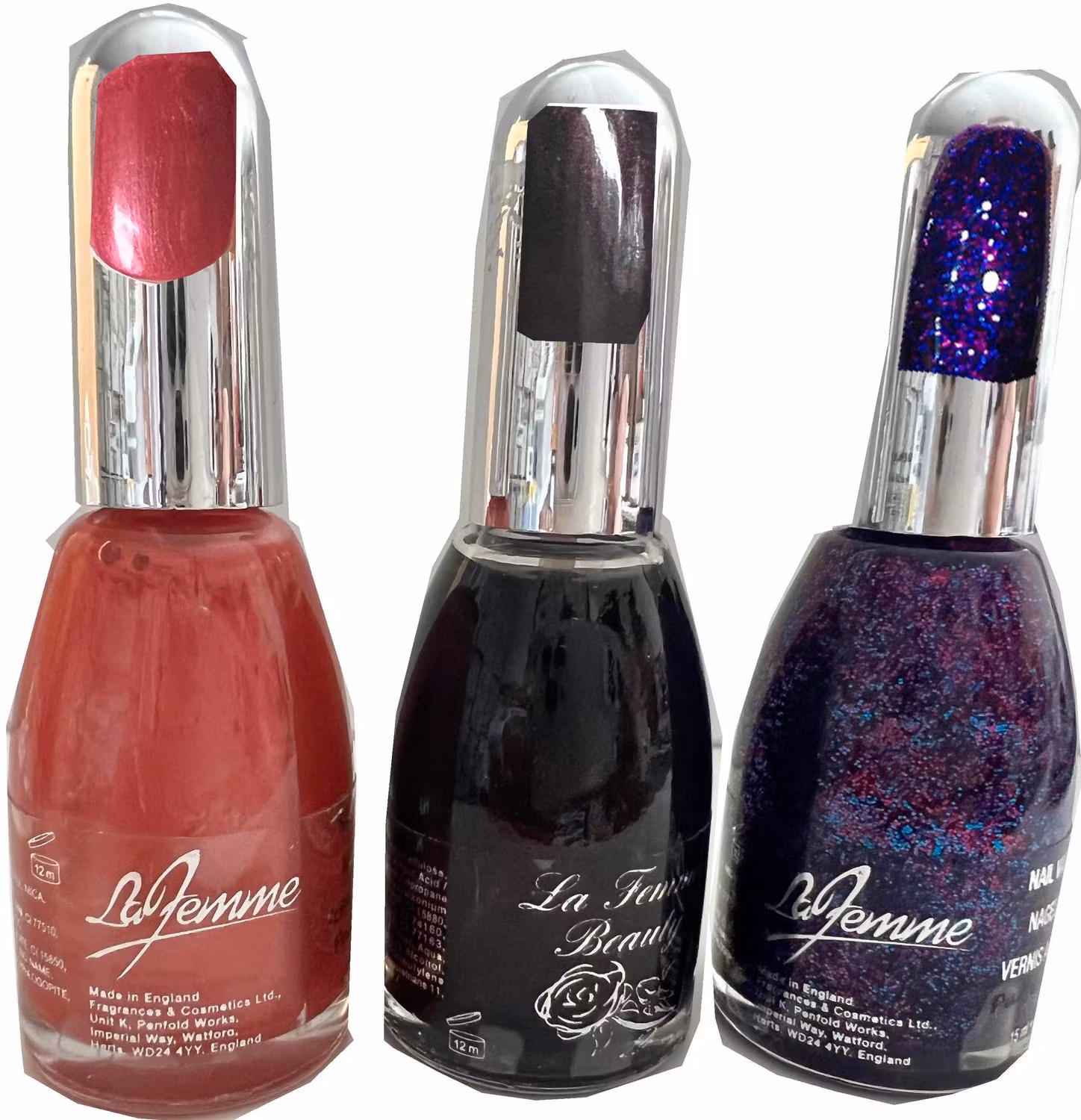 La Femme Silky Nagellack i snygg nyans & högkvalitet.Ger näring och samt en långvarig nyans till naglar.Innehåller 15ml x 3Färgkod: Peach Buff,Velvet Black,