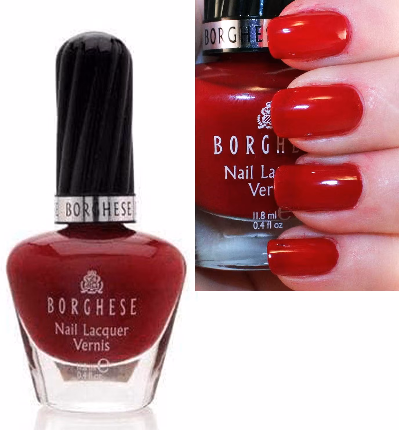 Borghese Nail Lacquer Vernis innehåller proteiner (för att återfukta och stärka), olivbladsextrakt (för att täta i fukt), mals halvädelstenar juveler (för intensiv glans) och E-vitamin (för en silkeslen konsistens). Lacket är lagom krämig, lysande och torkar ganska snabbt.