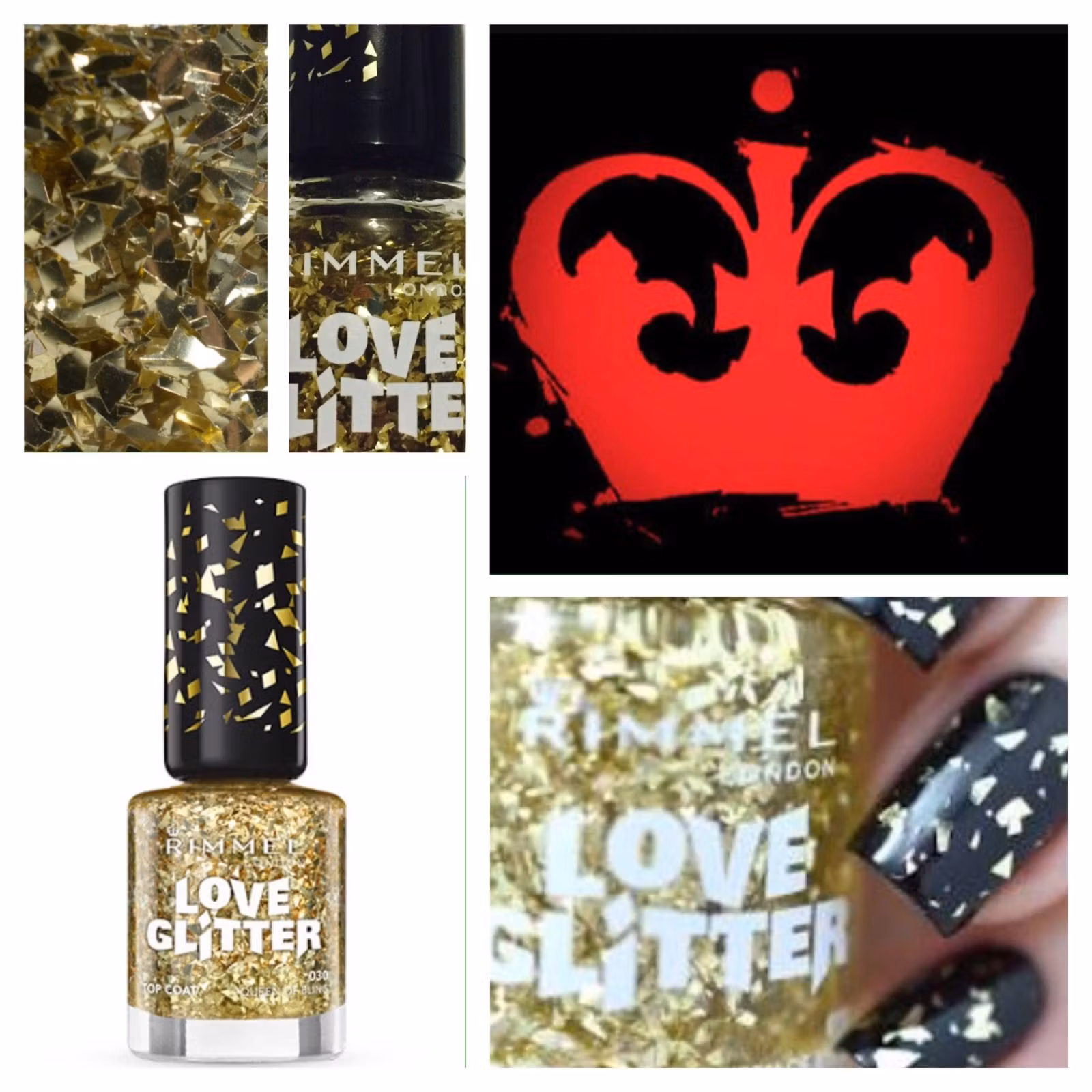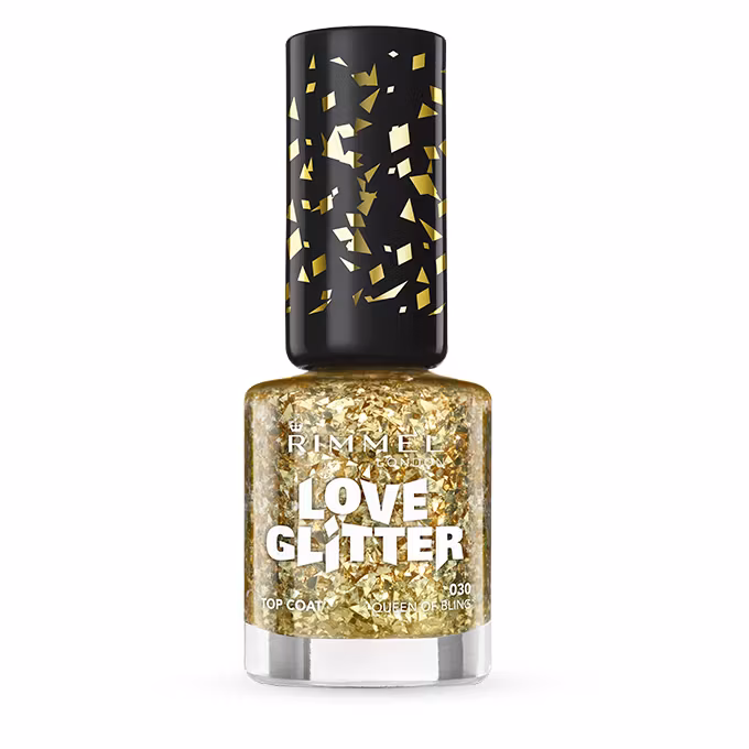 Rimmel London Love Glitter Nail Polish harfantastiska shards av glittrande glitter!Den kan bäras ovanför nagelfärg som Top Coat eller ensam för ren guldstyrka e