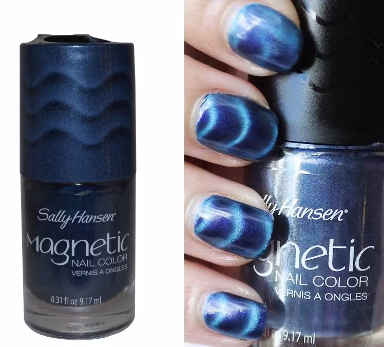Sally Hansen Magnetic Nail Color ger dig 3D nail art på några sekunder. Innehållande metallpartiklar skapar spektakulära effekter.