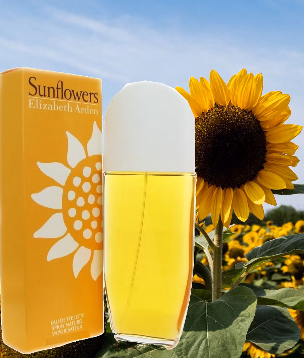 Härligt Elizabeth Arden Sunflower har somriga & sköna doftnoter av apelsinblomma, mandarin, bergamott, jasmin, iris, mysk och solros, ledande tankarna till lugnet på landet.
