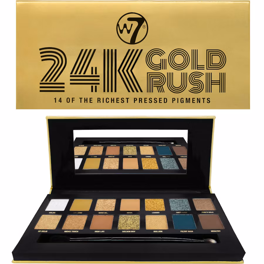 W7 24K Gold Rush Pressed Pigment Palette består av 14 fantastiska smoky/sotade inspirerade nyanser för att skapa en spännande smoky/sotad Look.