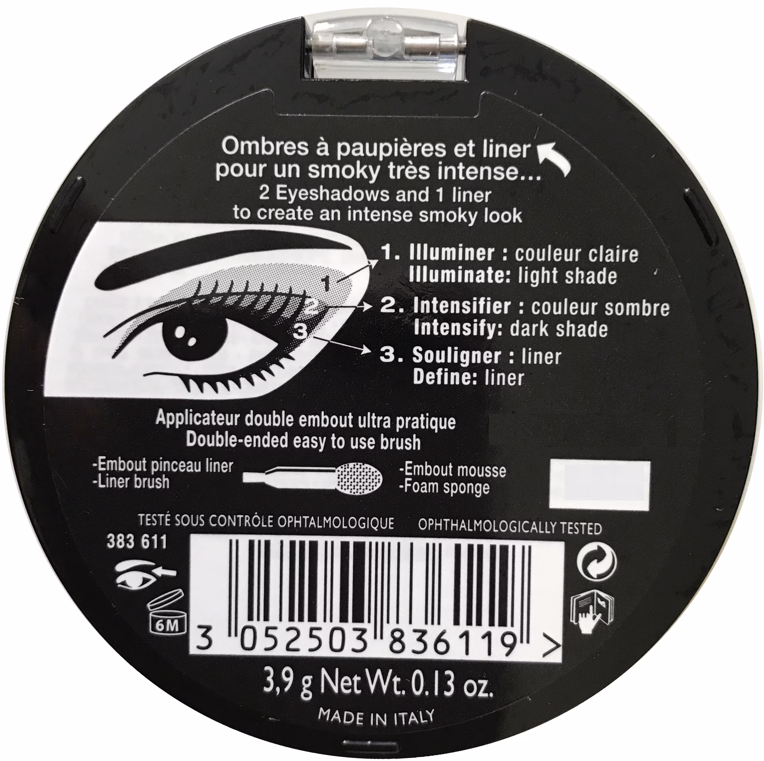 Bourjois Intense Smoky Trio Eyeliner & Eyeshadow Palette ingår av 2 ögonskuggor och 1 eyeliner för en superintensivt sotade smokey-ögon effekt!Innehåller 3.9g f