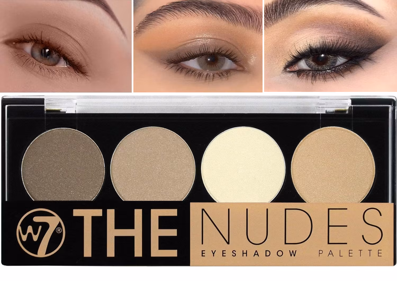 Ett snyggt smink-set för ögonskugga från W7 Cosmetics, för en perfekt nude-ögonskugga.