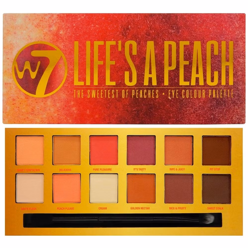 Life's A Peach är en ögonskuggpalett med 12 nyanser av stansade persikatoner!Paletten har en rad färger att klippa, veckas och popa, alla med matt finish.Life's