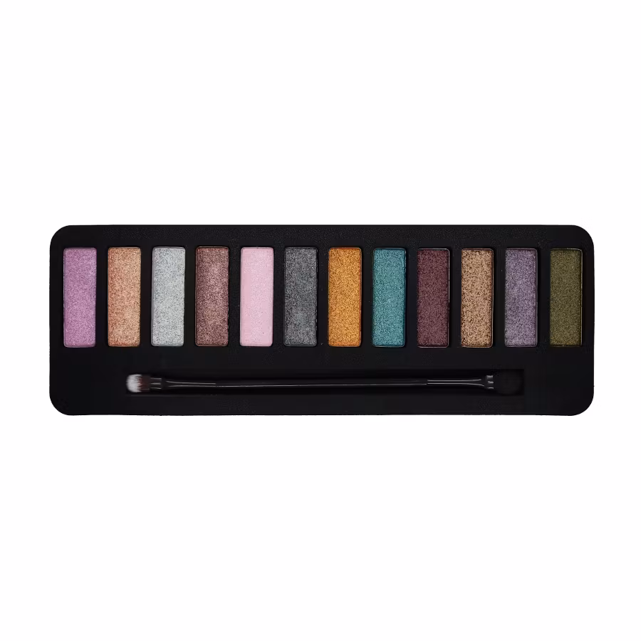 Setet innehåller 12 pressed, pärl-metalliska ögonskuggnyanser som får ögonen att poppa, med excentriska nyanser till djupare, jordnära nyanser.