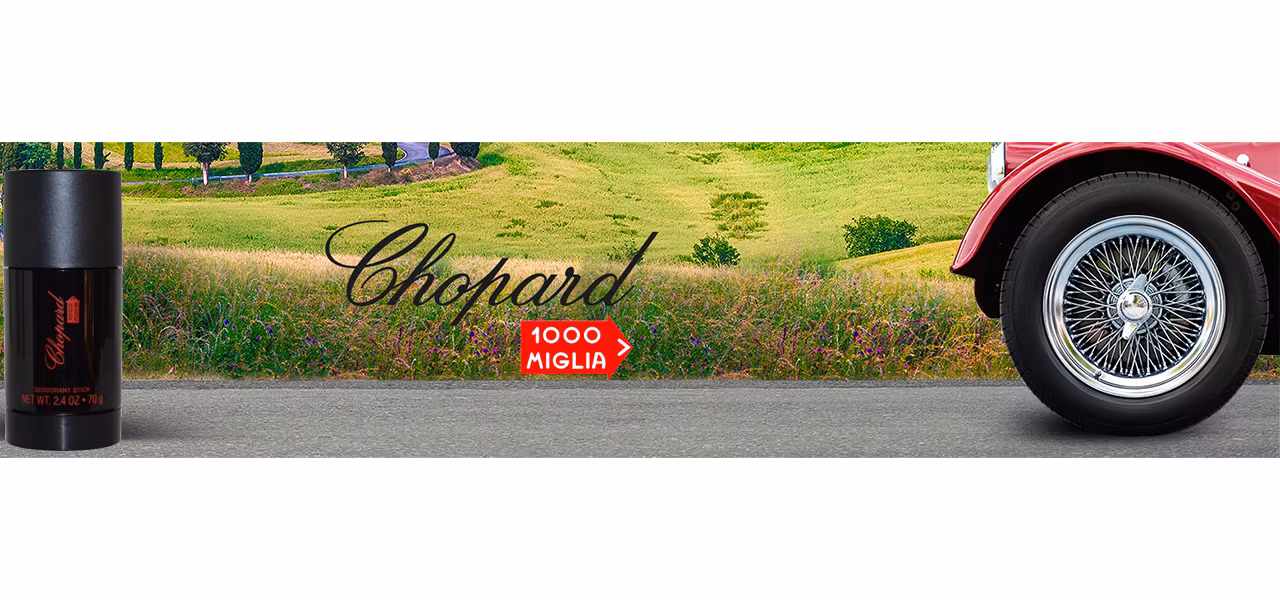 Sedan 1988 har House of Chopard varit en partner till Mille Miglas prestigefyllda race av veteranbilar. Sedan dess hade Chopard lanserat en klocka med samma namn och nu senast den maskulina doften 1000 Miglia, varav deostick mm. En som deltar i loppet, som fungerar som en imaginär modell för denna doft, måste uppnå tre saker: koncentration, inre frid och orubbligt självförtroende.