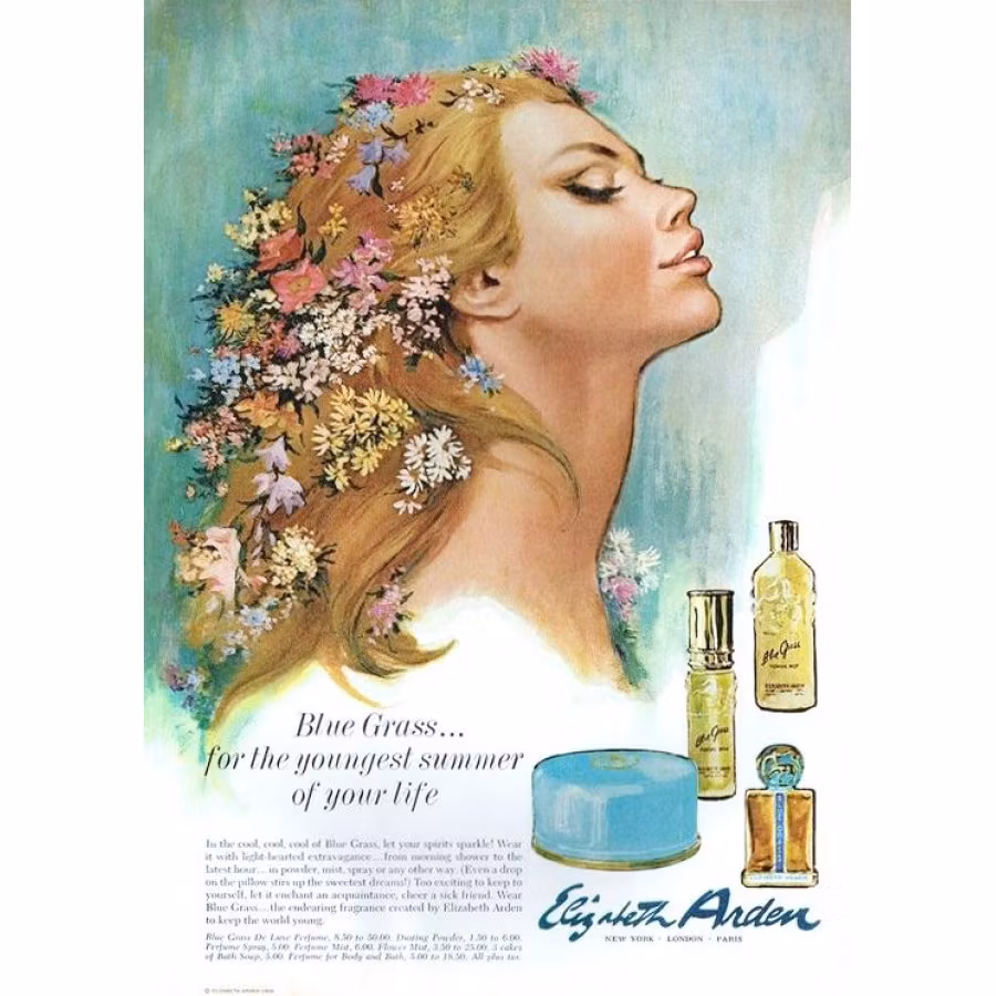 Elizabeth Arden Blue Grass är en blommig doft för kvinnor och är hyllad till utsikten över de blåsiga prärierna i Virginia, USA.