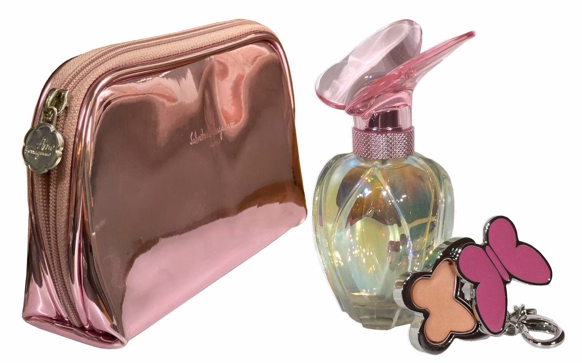 OBS: Setet består av Mariah Carey Luscious Pink EdP 50ml+Salvatore Ferragamo Pink Purse+Mariah Careys Luscious Pink Solid Parfum Butterfly Compact