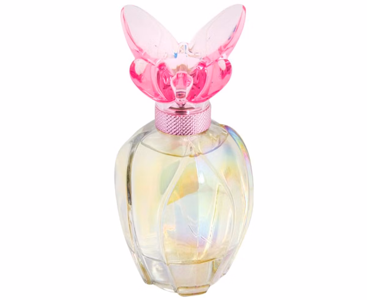 -Mariah Careys Luscious Pink Solid Parfum Butterfly Compact , ca 6 cm L, 1cm H och 3cm B, kompakt väger ca 120gram.