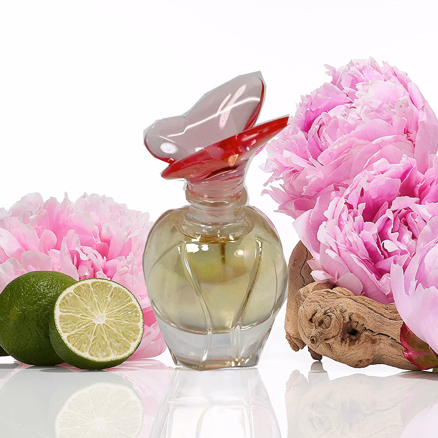 Tahiti Tiara, lily-of-the-dalen, rosa pion, ljust trä, sandelträ och vit mysk