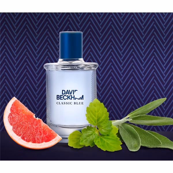 Beckham Classic Blue för män oemptståndlig & bjuder på inslag av grapefrukt, citron, lavendel, basilika, sandelträ och tonka bönor som ger en naturlig känsl