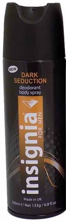 Insignia Deodorant Body Spray för muskulina män innehåller uppfriskande noter av tobak, läder, citron, bergamott, olivblomma och tonka bönorInnehåller