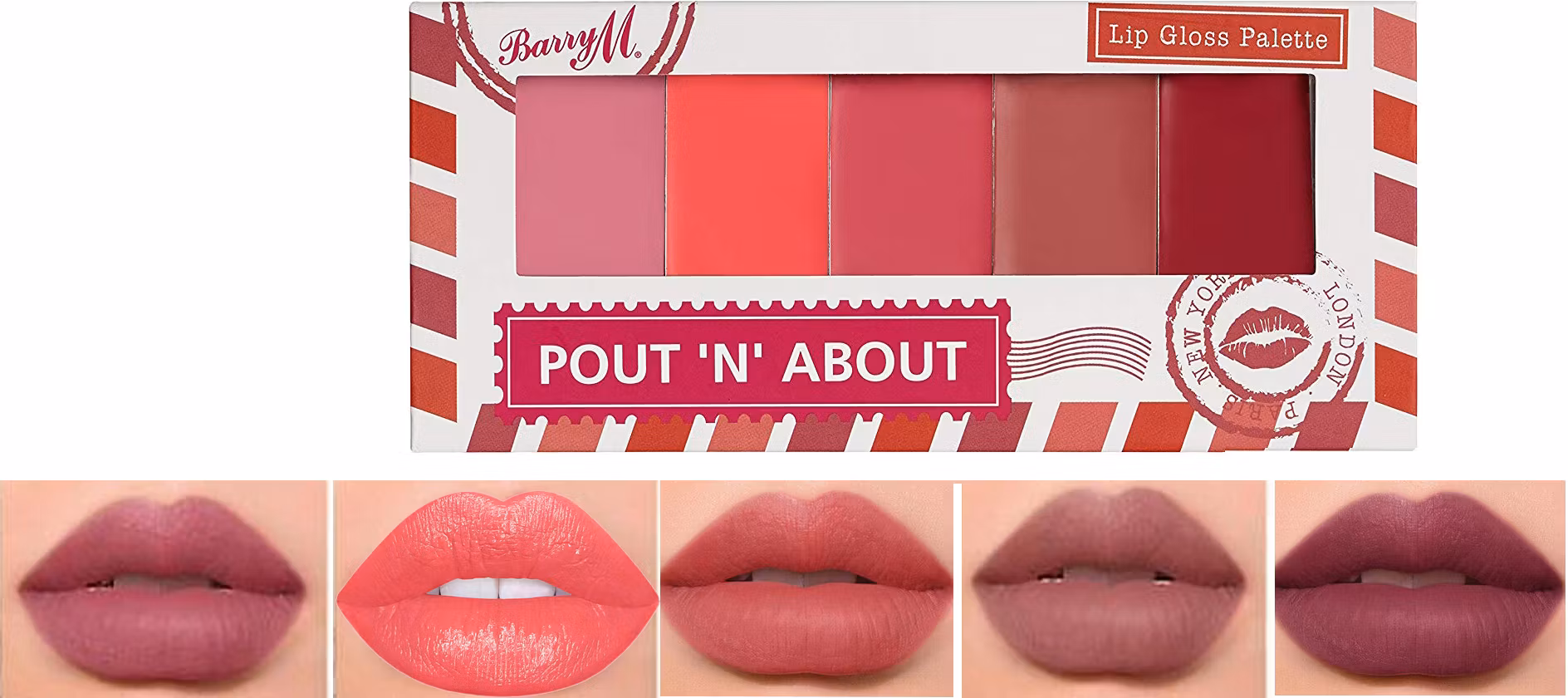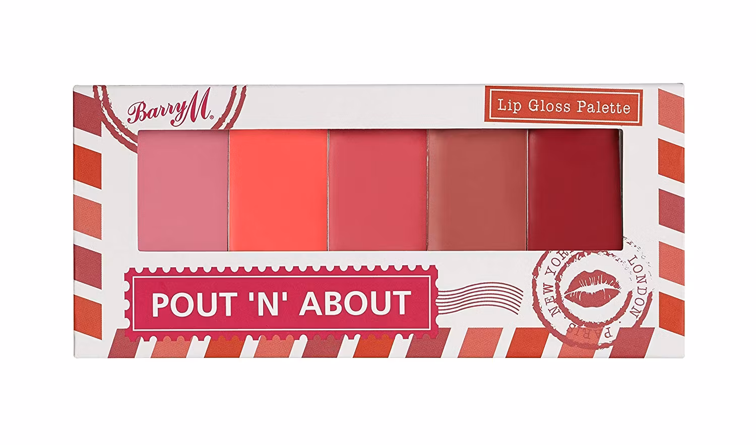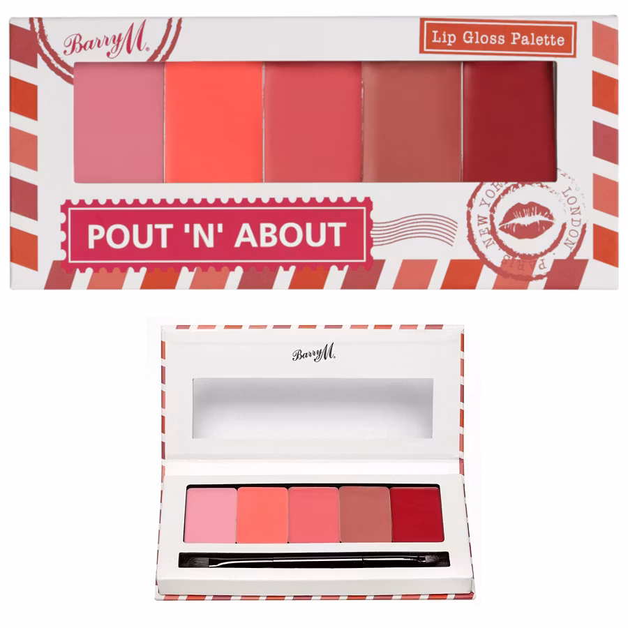 Förhöj den glansiga looken på dina läppar med Barry M Pout 'N' About Lip Gloss Palette.:-Intensiv färg i rosa, korall och rött mm-Ultra lättvikt-5 Luscious nyan